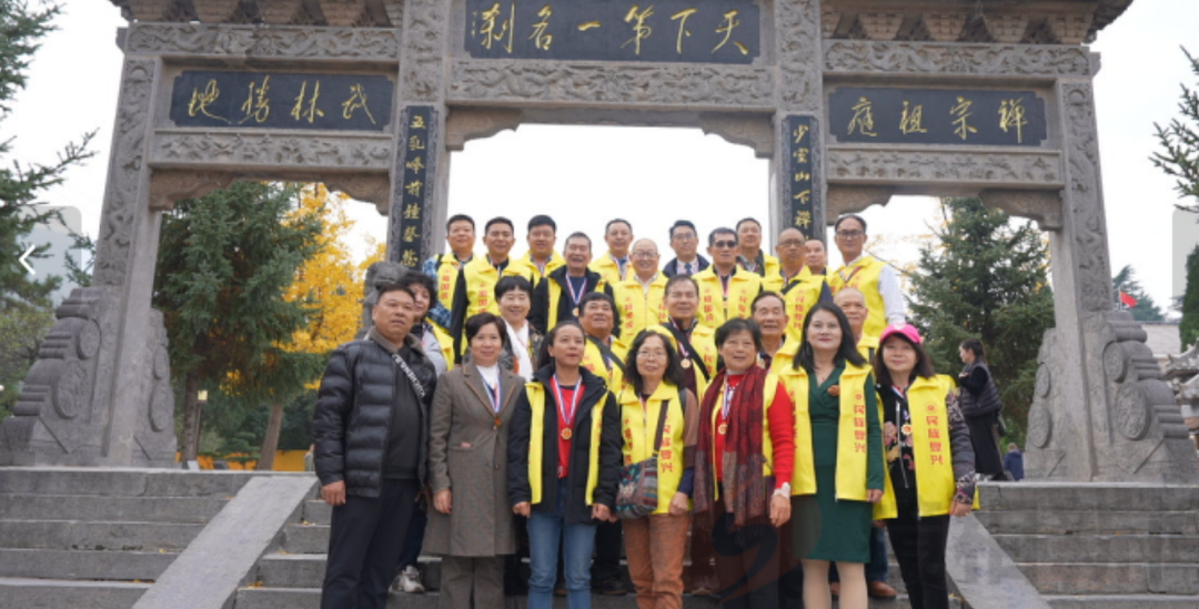 2025年10月25日,首个台湾光复纪念日的余温尚在,一支由台湾同胞组成的“重阳节·两岸同胞中原文化溯源之旅”观光团,循着文化根脉到访少林永化堂。团员们身着印刻“祖国统一,民族复兴”的服装,漫步少林寺常住院,瞻仰永化堂古遗址,指尖抚过斑驳的古墙,目光追寻着两岸同根共生的历史印记——这里是中华武术的圣地,更是台湾同胞魂牵梦萦的“文化老家”。