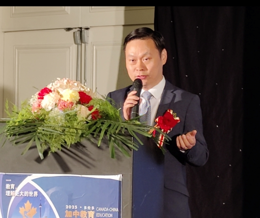 中国驻多伦多代总领事程洪波在致辞中强调,中加两国在教育领域的合作,已成为跨国教育协作的典范,其成果扎实、影响深远。教育是文明互鉴的桥梁,更是深化理解的纽带。正是基于对知识价值的共同追寻,各国才得以凝聚共识,携手构建一个更加和平、包容与可持续的未来。