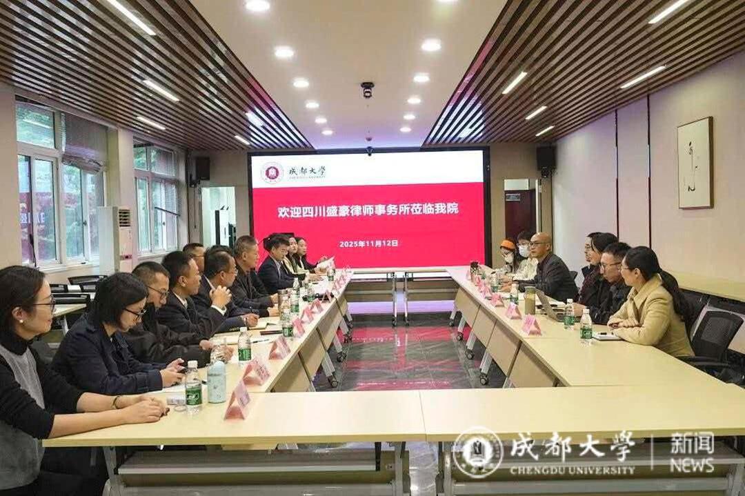 共工新闻社11月21日电(常奕晨)2025年11月12日下午,为落实“校所协同育人”,四川盛豪律师事务所董事会主任杜小东率“三会一部一中心”核心成员调研访问成都大学法学院。