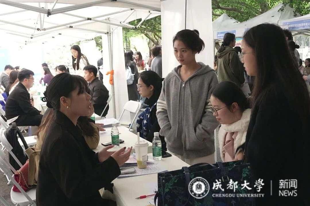 本次交流活动与法学院毕业生双选会同期举行。在双选会现场,盛豪律师事务所的专属展位前人头攒动,迅速成为全场焦点,吸引了大量应届毕业生排队咨询。现场气氛热烈,律所工作人员与同学们面对面深入交流,不仅耐心解答了关于职业发展、执业领域和薪资待遇等具体问题,还主动介绍了律所的系统性培养计划与晋升通道。许多学生手持简历踊跃投递,并就自己关心的实务领域与现场律师进行了初步沟通。