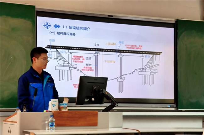 本次活動緊扣電子信息學院學科優勢,由杭寧聯絡線項目總工程師、高級工程師包仕淳授課。包仕淳以自身十年橋梁建設經驗為切入點,從“橋梁結構進化史”開篇,詳解梁橋、拱橋、斜拉橋、懸索橋的技術迭代邏輯,結合公司參建的“世界首座三塔四跨雙層鋼桁梁懸索橋”甌江北口大橋、“世界最大跨度斜拉橋”常泰長江大橋等標杆項目,拆解電子信息技術在超大跨徑橋梁中的應用場景。課程核心環節聚焦“數智化賦能基建”,以公司自主研發的BIM+GIS三維數智平臺為案例,詳解如何通過無人機激光雷達掃描實現施工區域厘米級實景還原,如何利用X-vdc多維數據融合技術構建數字孿生底圖,讓學生直觀理解“電子信息如何為橋梁裝上智慧大腦”。針對電子信息專業特色,重點演示了BIM技術在複雜節點碰撞檢測、施工進度模擬中的應用,通過片段解析、設備操作視頻等形式,打通“理論知識-工程應用”通道。課堂互動環節中,包仕淳針對蘇州大學的同學們提出的“極端環境下傳感器穩定性設計”“橋梁數字孿生的數據安全防護”等問題展開深度交流,並分享了公司“零壹創新工作室”“基石創新工作室”在人才培養機制等方面的優勢及經驗。