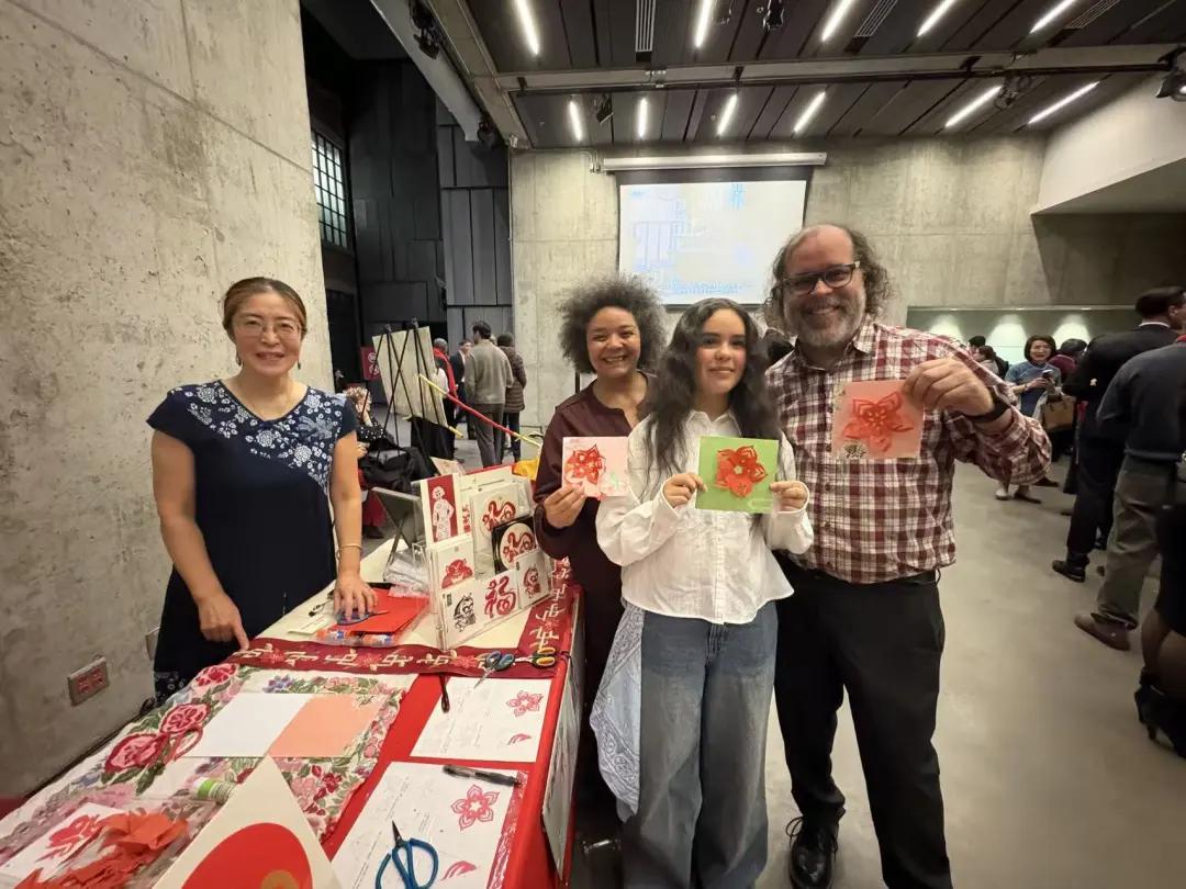 今年的来宾中年轻面孔更加亮眼。在书法、剪纸互动区,小朋友们争先恐后练写汉字、体验剪纸,老师们边示范边讲述中国文化,现场呈现文化交融的生动画面。
