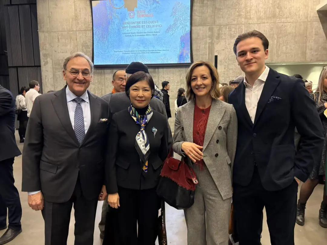 11月22日,王红代总领事(左二)与Martin Cauchon先生及家人在”融合之美“招待会上。共工社发(胡宪/摄)
