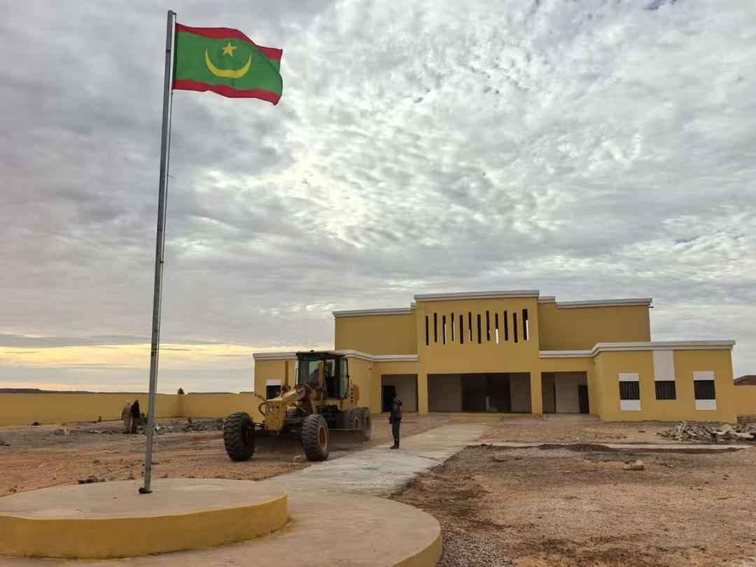 共工新闻社毛里塔尼亚11月28日电(通讯员:郭子鹏)傍晚的撒哈拉,夕阳把天空染成玫瑰色。古迪亚第一学校崭新的土黄色教学楼在柔光中格外醒目,围墙内传来孩子们欢快的奔跑声。11月28日,这里将举行隆重的启用仪式,而在围墙内外,一台印有“CRBC”标识的平地机正缓缓来回,将最后一块坑洼推平——这是中交一航局四公司毛塔项目部应古迪亚市政府请求,义务派遣的“友谊机械”。