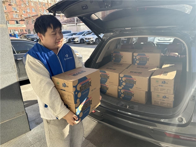 活动现场,身着蓝马甲的志愿者们将矿泉水送到政府工作人员办公室中,感谢他们扎根基层、服务群众的辛勤付出,一箱箱矿泉水更传递了共建互助的温暖情谊。