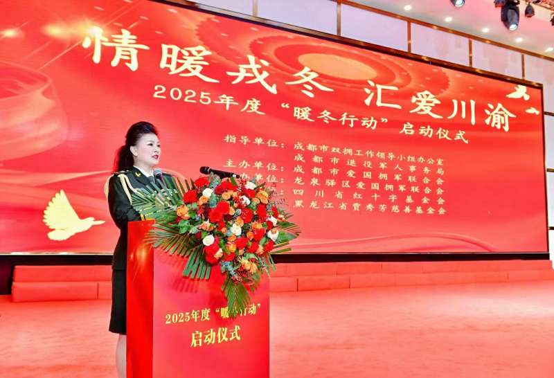 共工社12月28日电(记者 熊馨缘)12月22日,成都市爱国拥军联合会第一届第六次会员大会暨2025年度“暖冬行动”启动仪式在龙泉驿区举行。成都市退役军人事务局主要及分管负责同志,龙泉驿区相关负责同志,海军成都舰、四川银行、成都市爱国拥军联合会、黑龙江省贾秀芳慈善基金会有关负责人出席活动。战斗英雄、功臣模范、爱心企业代表、退役军人及优抚对象代表、退役军人“战旗红”志愿者等600余人参加仪式。四川省爱国拥军模范、成都市最美拥军人物、成都市爱国拥军联合会副秘书长、成都市女学文化研究会会长龚怡受邀担任活动主持。