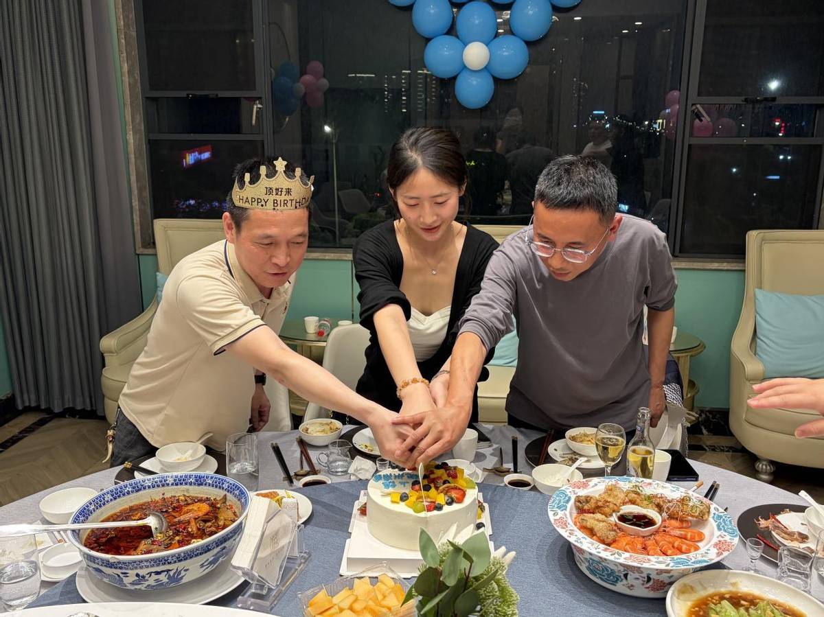 当日晚宴在紫晶大酒店温馨开启,寿星们头戴金色生日帽围坐一堂,来自不同地域、不同创业背景的会员们在此分享喜悦、共话发展。随着生日歌响起,大家共同许愿、切分蛋糕,现场氛围融洽热烈。寿星们纷纷表示,这份温暖关怀让我们备受感动,未来将继续全力支持商会发展,与商会共成长。