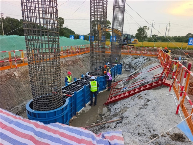 系梁是連接橋梁墩柱的關鍵構件,其施工質量直接關系到橋梁整體的穩定與安全。為確保首件工程“開門紅”,錫太高速公路項目部充分發揮管理核心作用,科學統籌,周密部署。施工前,項目部組織技術骨幹編制了專項施工方案,並聯合技術、監理與施工班組進行了詳細的技術與安全交底,將責任落實到人,將標准貫徹到崗。施工過程中,項目部管理團隊全程緊盯、嚴格把控,對測量放樣、基坑開挖、鋼筋綁紮、模板安裝到混凝土澆築等每一道工序都進行了嚴格的監督檢查,確保各項技術指標完全符合設計規範。