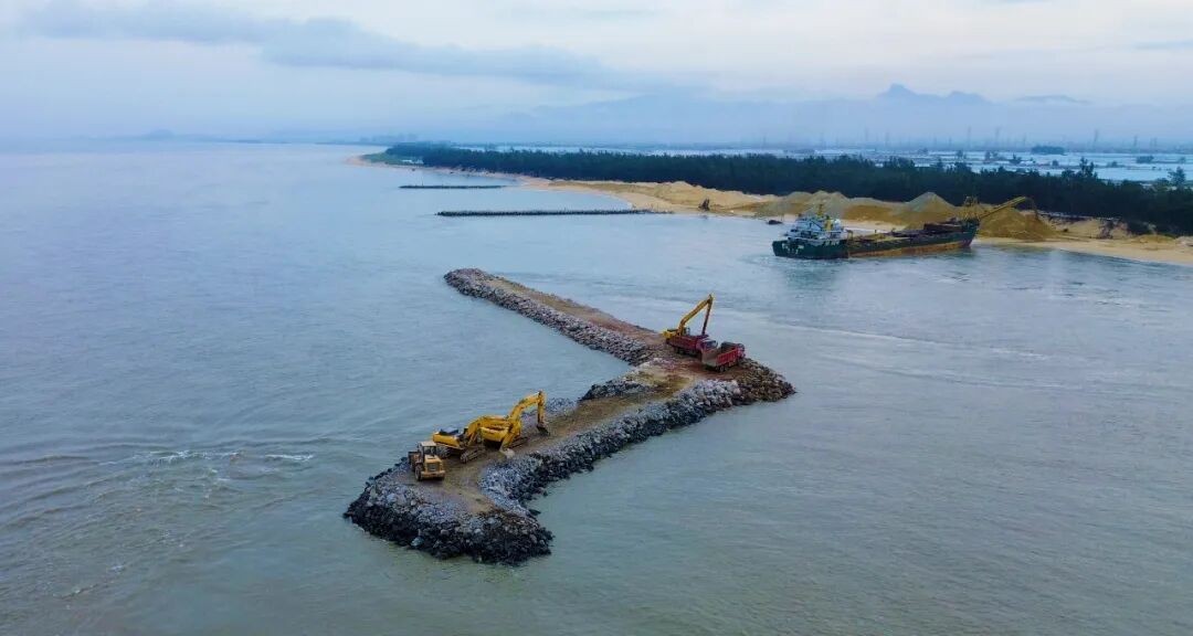 共工新聞社11月26日電 11月19日,中交一航局三公司負責施工的樂東縣大角灣生態修復(EPC)專案L1號-L4號段離岸堤拋石作業順利完成。